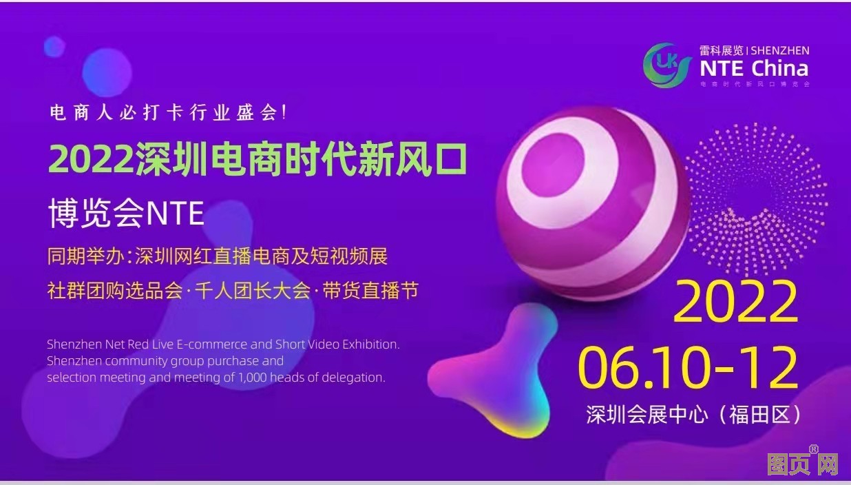 2022深圳电商时代新风口博览会NTE暨深圳网红直播电商及短视频展于6月10-12日,深圳会展中心(福田区)盛大召开!本届展会由深圳电商时代新风口博览会组委会,上海雷科展览有限公司,上海华创博展展览有限公司主办,本次博览会展出面积50000平方米,3大展馆,1000+参展企业,数百家行业媒体竞相报道,将吸引网红等专业买家团6万多人次现场洽谈!数百万人观看直播,助力传统企业提升参展品牌曝光度对接电商直播供应链、买家团、网红MCN机构等.为品牌商、渠道商、服务商提供具有商业价值的对接合作!